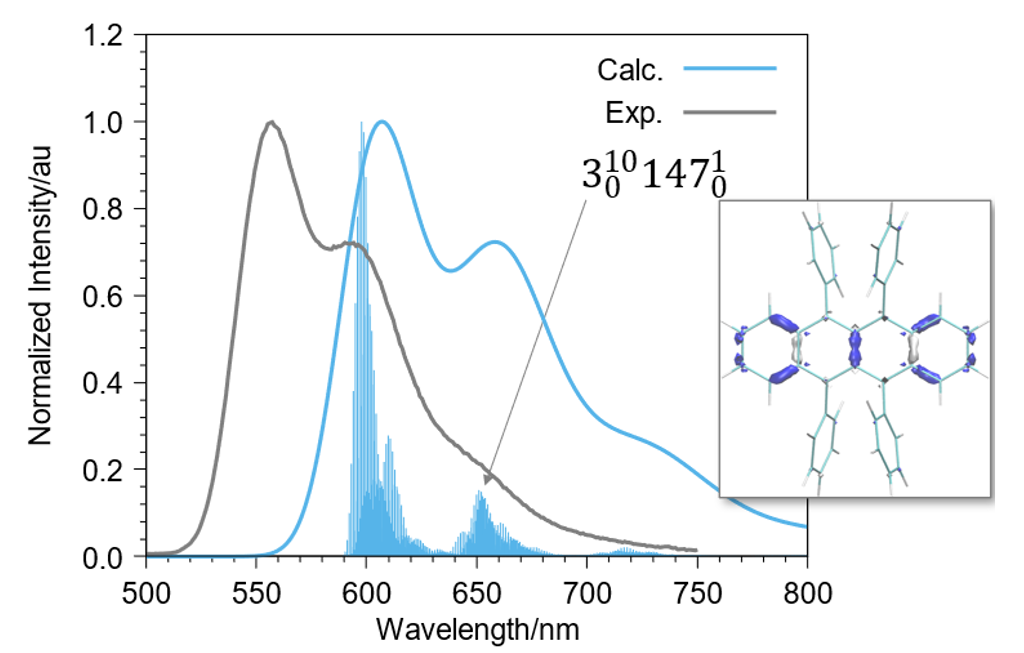 本ソフトウェアは、ある分子構造において、発光スペクトルなどの